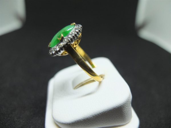 แหวนหยกพม่า ล้อมเพชรกุหลาบ