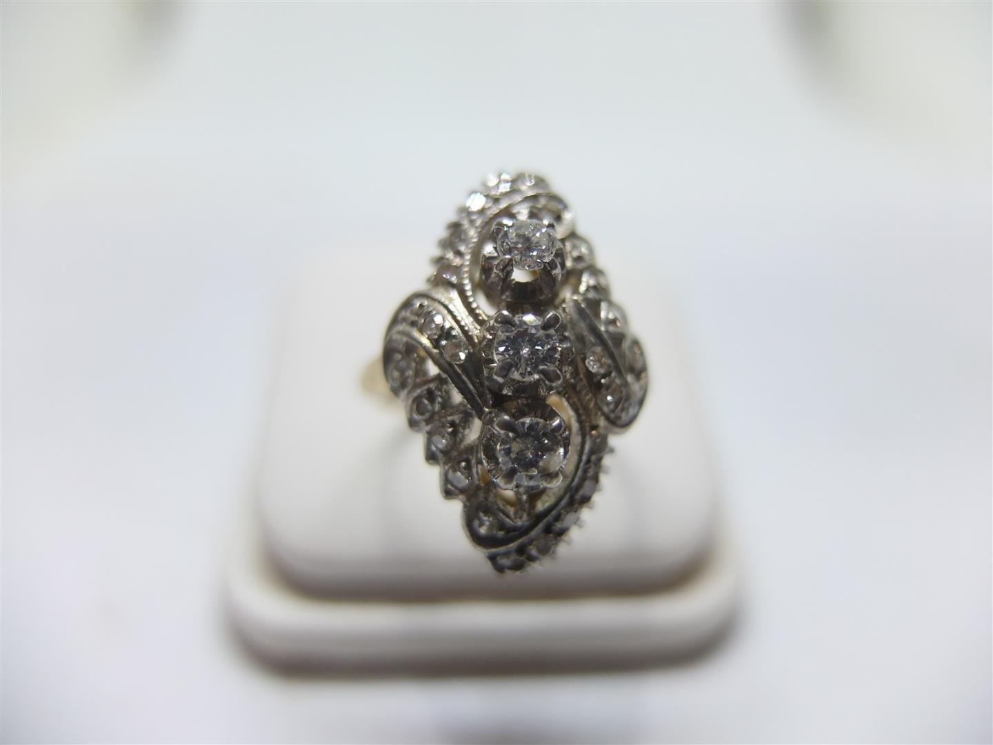 แหวนเพชรเกสรทรงมาร์คีโบราณ
