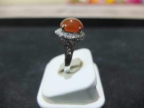 แหวนเงินหยกสีส้มล้อมเพชรสวิส