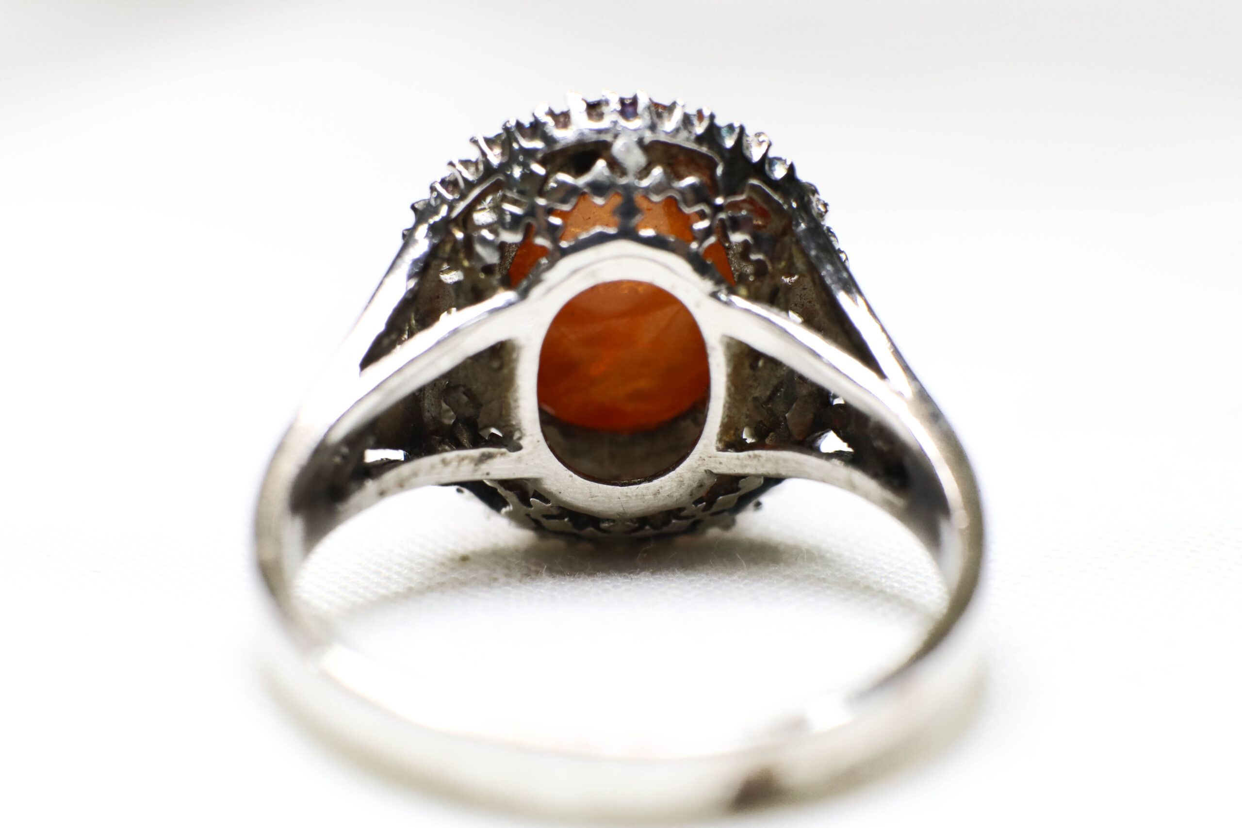 แหวนเงินหยกสีส้มล้อมเพชรสวิส